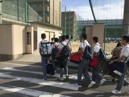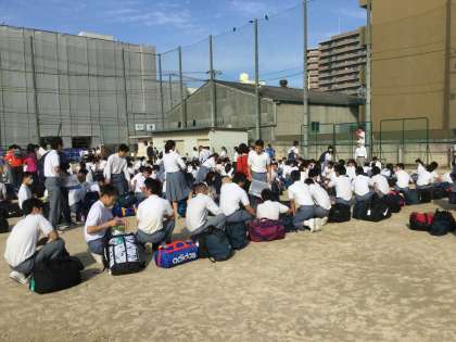 快晴のもと、7時ごろから生徒たちが大きな荷物をもって、第2グラウンドに登校してきました。