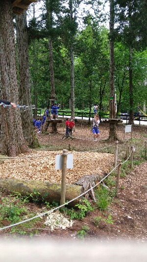 ラフティングと同時並行で、選択体験もスタートです。フォレストアドベンチャーを体験中です。