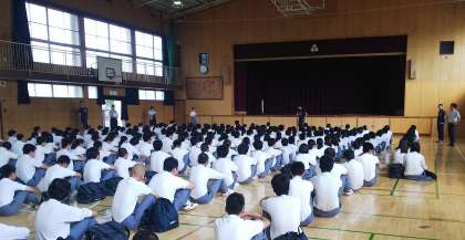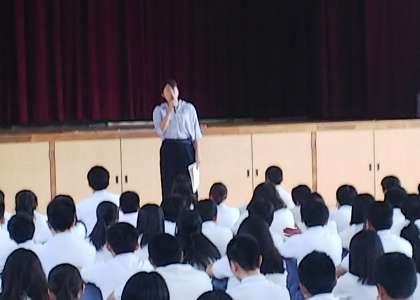 坂下先生が昼休みの安全なすごし方などについて、お話をされました。
