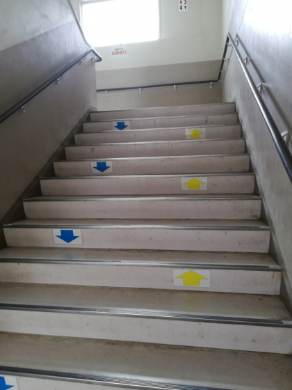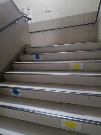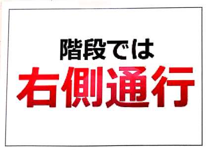 「階段では、右側通行を守りましょう!」