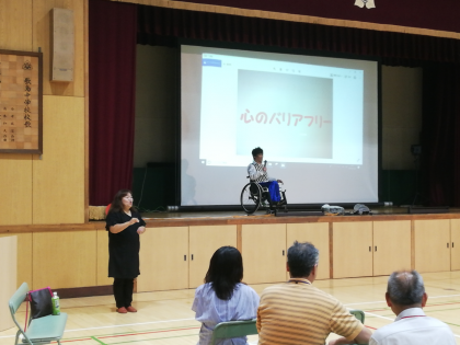 心のバリアフリーとは相手の立場に立って優しさや思いやりをもつこと、そして少しの勇気を持って言葉や行動にしていくことが大切だと教えていただきました。