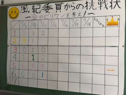前回の風紀委員会で服装チェックをクラス対抗戦で行おうという意見から生まれた企画です。