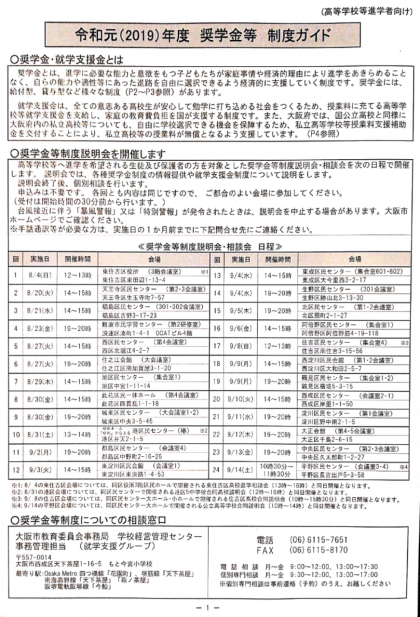 各種の奨学金のほか、高校の授業料についての説明もあります。