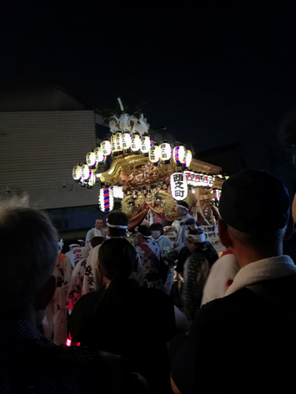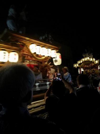 目の前を大きな山車が駆け抜ける様子は、迫力満点!