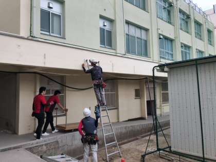 みなさんが2学期から使う新校舎は、夏休み期間以前から猛暑の日も雨の日も、たくさんの人の手によってつくられたものです。