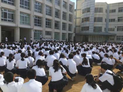 7号館前での全校集会