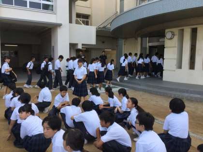 集会終了時には、教室に戻るときに学年ごとに使用する階段などの連絡がありました。
