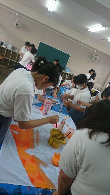 3年生は、放課後を利用して学級旗を作成しています。夏休み中に原案を考えました。