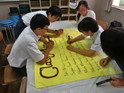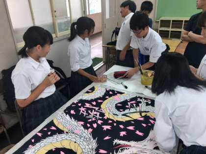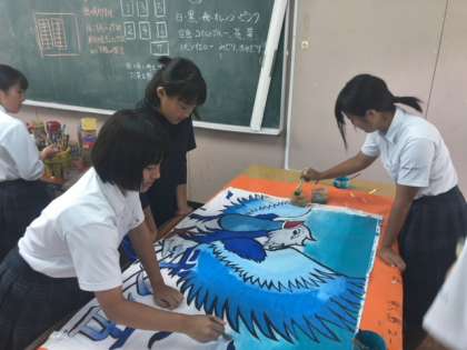 2年生も本日、放課後美術室で学級旗を制作しています。本日完成予定で、最後の仕上げを行っています。本番ではクラスの想いのこもった旗を掲げ、素晴らしい入場行進を見せましょう!