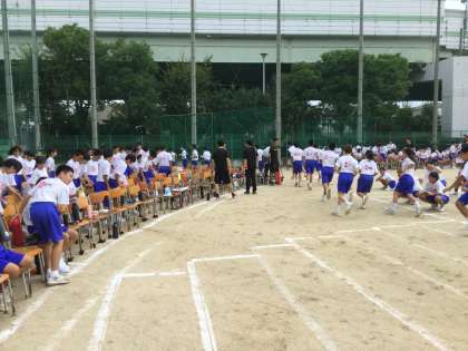 プログラムの最初は、ラジオ体操です。体育委員の号令で、きれいな体操を心がけました。