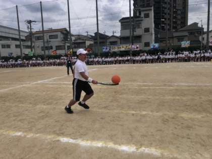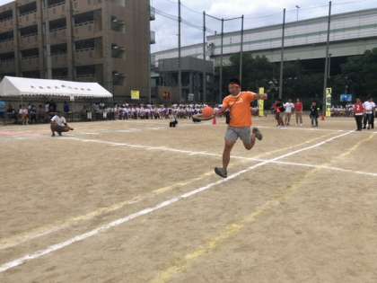 保護者と各学年の先生によるPTA競技です。大人も全力です。