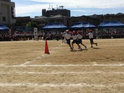香蓑小学校にお邪魔した頃には、残暑というよりも真夏のようにじりじり照り付ける厳しい炎天下での運動会となっていました。
