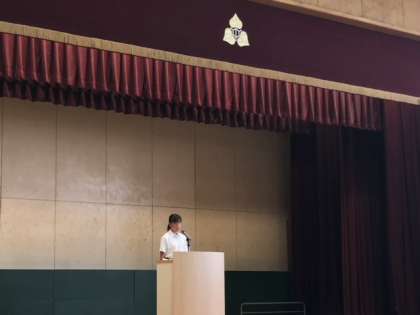 舞台で緊張しながらも一生懸命学校に対する想いを話してくれました。またそれを静かに応援する姿勢も見られました。選ぶ責任、選ばれる責任を持って場に臨んでいるみなさんは、頑張る姿はカッコいい、それを応援する姿もカッコいいという言葉に相応しい立合い演説会の雰囲気を作っていたと思います。