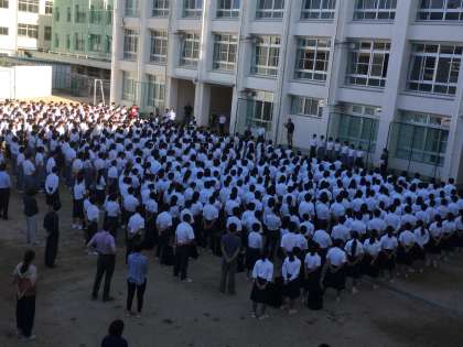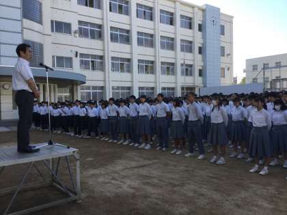 10月7日(月)の全校集会では、校長先生のお話は、明後日の9日より中間テストがあります。しっかり学習に取り組むように。新しいい生徒会役員が決まりました。自分たちの代表に協力して素晴らしい学校にしてくださいと伝えられました。