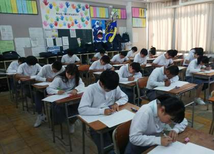 10月9日(水)10日(木)の2日間、二学期の中間テストです。写真は3年生のテスト開始直後のようすです。