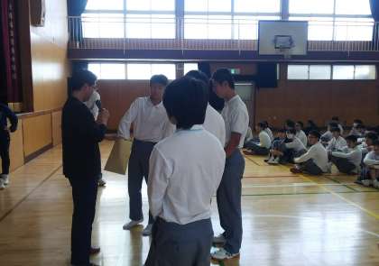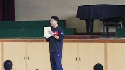 3年生は今朝の学年集会で、泊先生が、合唱コンクール(31日実施予定)にむけての取り組みで心がけるべきことを話しました。そのあと、合唱コンクールの発表順を決めました。各クラスの代表生徒による厳正なくじ引きの結果、1組が最初に発表となりました。2番目以降は、7組、6組、3組、5組、4組の順で、2組が『トリ』を務めるごとに決定しました。