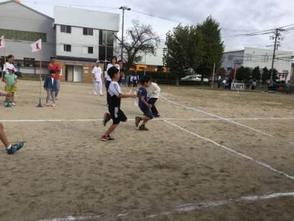 整備された公園にトラックが描かれ、距離感が近い地域住民同士の手作り感のあるものでした。徒競走では声援をいっぱい受けた子供たちが、一生懸命走り汗を流していました。