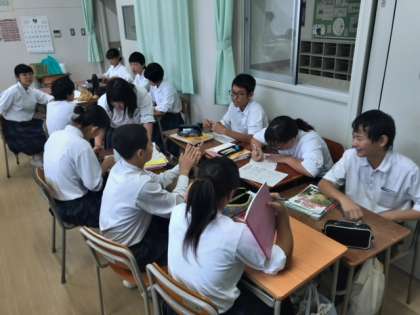 自分の将来の夢などについてスピーチできるようにグループでの学習を行なっています。普段からの生活や学習において、学び合いの習慣をつけることで、伝える力、共有する力を育んでいます。