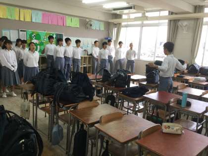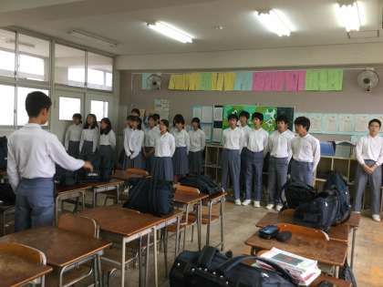 1号館の階段で、上の階からきれいな歌声が聞こえてきます。声につられて上階のクラスに行くと、3年4組の朝練習でした。