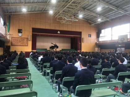 本日5、6時間目に2年生の合唱コンクールリハーサルが行われました。司会も含めて、実際の流れを確認し、後半では課題曲「大切なもの」を歌い合いました。舞台の上での緊張もあってか、いつもの力を発揮できない人も多かったようです。