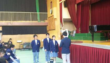 各クラスの合唱のあと、吹奏楽部の皆さんに演奏していただきました。