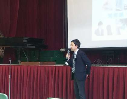 まず、箕面自由学園高等学校入試企画室の吉永雅和先生に講演をしていただきました。教育改革や大学入試改革の動向や、必要とされるようになる学力について話をされました。