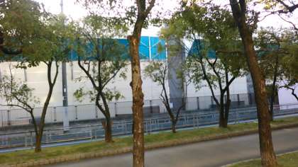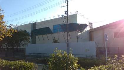 緑陰道路側から見た4号館の様子です。2学期に入ってから、4号館の解体準備が始まりました。