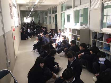 3年生は3階・4階に避難しました。1年生は7号館3階廊下へ、2年生は7号館4階へ避難しました。