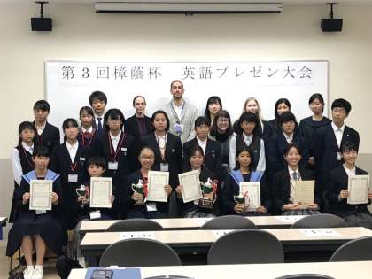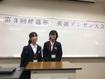 本日、第3回樟蔭杯英語プレゼン大会が行われ、英語部1年生の井上さんと松田さんが出場しました。