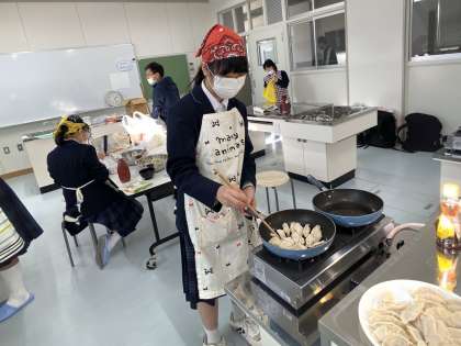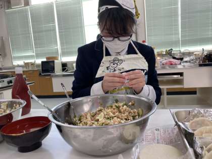 本日期末テスト終了後、家庭科部は調理実習に取り組みました。今回は餃子をつくっています。具材をいっぱい詰め込んだ美味しい餃子が出来上がりました。