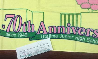 生徒のみなさんに先日配付した70周年記念品としてタオルを作成しました。