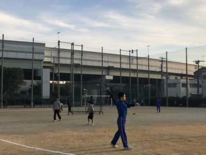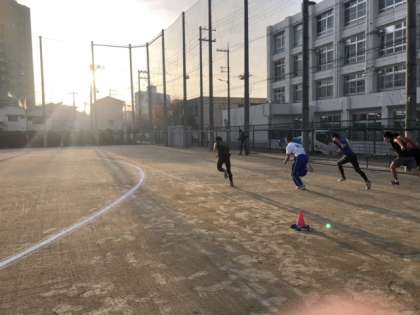 本日、朝の第2グラウンドでは野球部と陸上競技部が活動しています。3年生も後輩に指導したり、トレーニングに励んでいました。