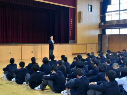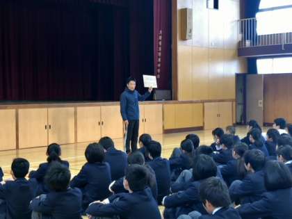 2年生学年集会が行われました。学級委員長からはチャレンジテストに向けて、気を緩めず勉強しようというお話、辻先生からは読解力や色んな考え方、世界観を広げるためにも読書の時間を積極的に活用しようとお話がありました。