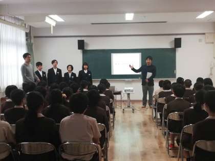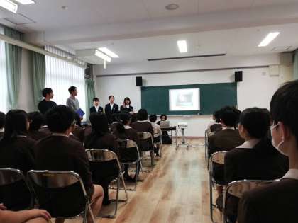 本日午後、生徒会役員は小学校訪問で、野里小学校を訪問し、学校紹介を行いました。