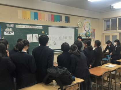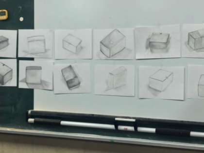 本日の美術部の活動風景です。箱や鳥などのモチーフを観察し、デッサン練習を行っています。