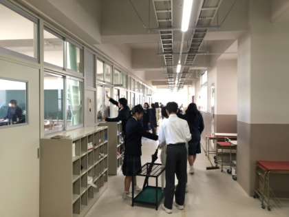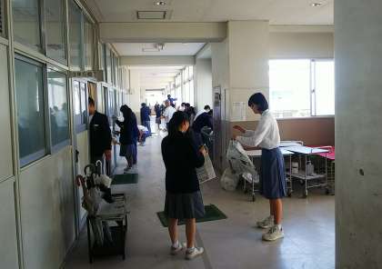 本日4時間目に、全学年で校舎の大清掃を行いました。3年生は受験に向けて、美しい環境で新学期を迎えられるよう丁寧に掃除に取り組みました。1、2年生は新校舎初めての大清掃で、今までの違いに戸惑いながらも一生懸命取り組んでいました。