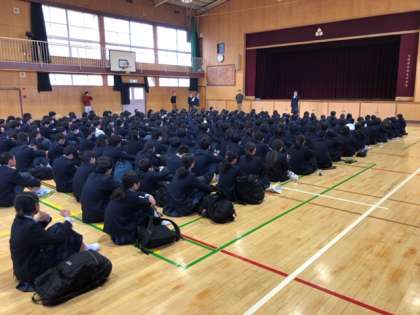 委員長からは、チャレンジテストが終わっても気を緩めず勉強に励むことというお話、浅地先生からはSDGsについて自分たちにできることについてのお話、石濱先生からは以前より静かに素早く集合できているが、遅刻ゼロでの集会を目標に時間を余裕を持って行動する習慣をつけましょうというお話がありました。