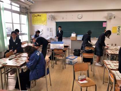 文化委員は30日百人一首大会に向けての札の確認、番号付けを行なっています。