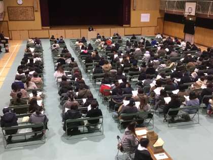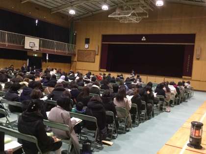 1月18日(土)に「令和2年度新入生保護者説明会」が体育館でありました。厳寒にもかかわらず、200名近くの新入生保護者様に参加いただき、同時に公開授業にて学校の様子も見ていただきありがとうございました。