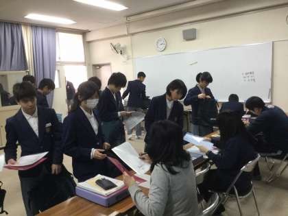 出発前には、担当の先生の指示で、提出書類を確認し、学校にもどってからは、担任の先生に受験番号を報告し、高校からの連絡事項を確認しました。郵送やインターネットで出出願をすませた高校もあります。