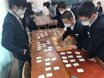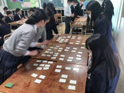 本日6限目に2年生は各教室で、百人一首の練習を行いました。先週よりも上の句で札を取れる人が増えていました。