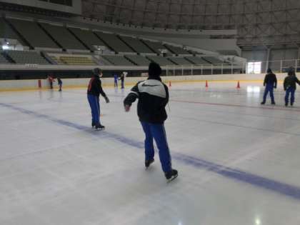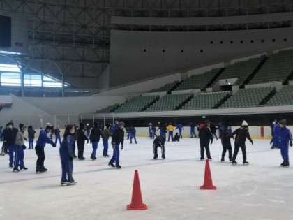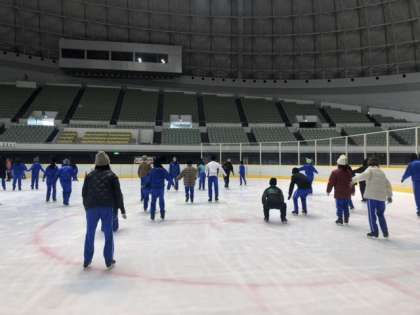 準備ができた人から滑り始めています。慣れてる人、初めての人それぞれですが、楽しんでリンクの上を滑ります。