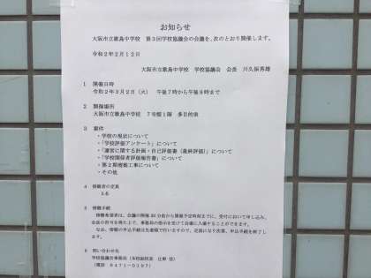 大阪市立歌島中学校 第3回学校協議会の会議を、次のとおり開催します。