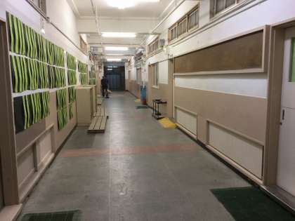 体育館への通路確保のため、3号館1階の中廊下を常時通行できるようにします。