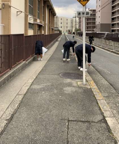 今週1週間はクリーン週間でした。1、2年生の整備委員が朝早めに登校し、学校周辺のゴミ拾いをしてくれていました。