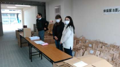 お誘いあわせの上、予定時刻より早まりましたが、標準服体操服引き換えにお越しください。