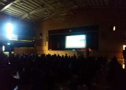 そのあと、3年間の思い出を写真を、集めたムービーを鑑賞しました。これは、卒業式前日のお別れ会のために作成したものです。笑いや歓声があふれていました。