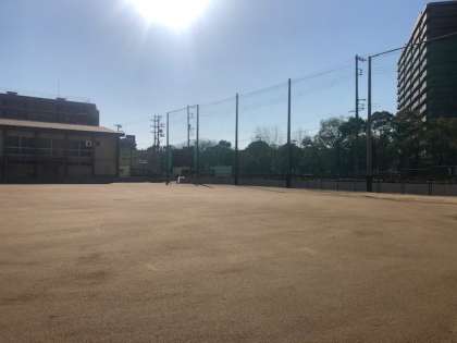 第1グラウンド使用に向けて着々と準備が進められています。火曜日ににがりをまきました。水曜日雨が降り、今日整地を行いました。旧校舎側から出入りするための門もつくられています。