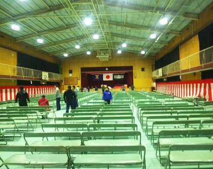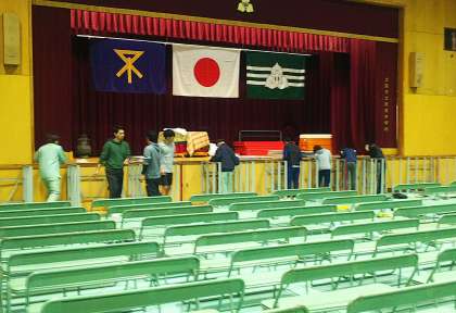 本日、明日の卒業式に向けて教職員で式場準備を行っています。体育館内の椅子の設置、校舎の清掃も行っています。教職員一同で明日の卒業式が無事にとりおこなわれるように願っています。