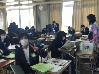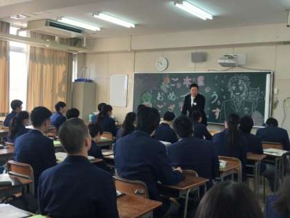 担任の先生から最後のお話し、クラスメイトとの最後の教室での時間を過ごしています。